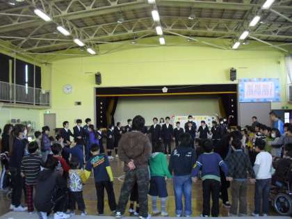 多くの子どもたちは校庭で遊んでおり、口頭での指示を聞いて速やかに集合できました。