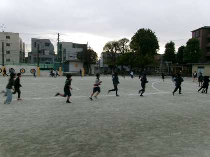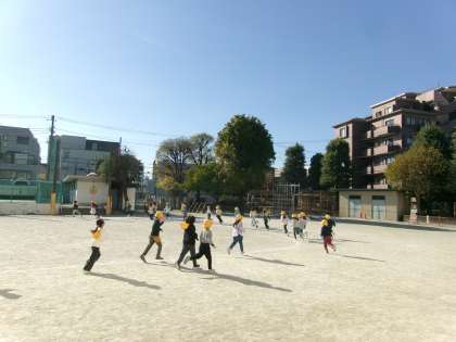 1年生も黄色い帽子をかぶって、「レッツラン!」に取り組んでいます。初めは、走る速さを調節するのが難しそうでしたが、終盤は少しずつ慣れてきました。次回は、さらに上手に走れるようになるといいですね。