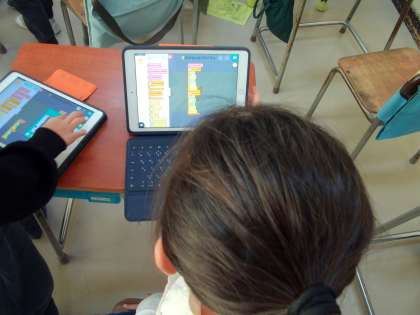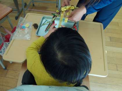 今日は、2学期最後の土曜授業日です。学期末ということもあり、お楽しみ会を企画して楽しんだり、冬の飾り物を作って楽しんだりしました。また、1年生はプログラミング学習に取り組みました。学習用タブレット端末の使い方にもだいぶ慣れ、上手に操作できるようになってきましたが、プログラミングで対象物を思ったように動かすのは難しく、何度もあきらめずに組み立てていました。難しいことに挑戦したり、粘り強く取り組んだりすることができてすばらしいですね。
