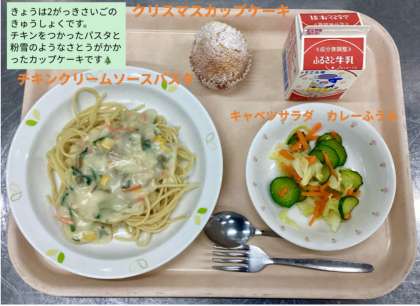 今日は2学期最後の給食です。お楽しみのデザートは、サンタさんの