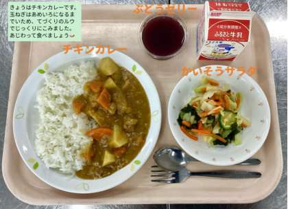 給食のカレーは、バターや油・小麦粉からルウを手作りしています。