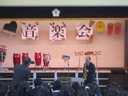 (写真1は、校長先生によるアルトサックスの演奏です。) -