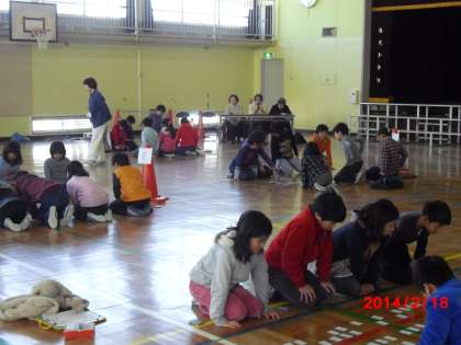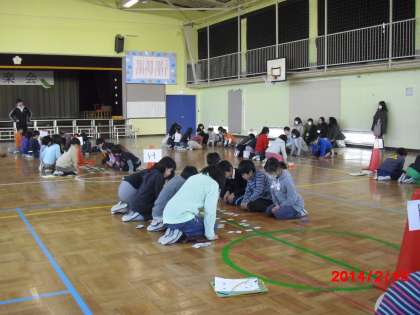 3,4年生が体育館で百人一首大会を行いました。