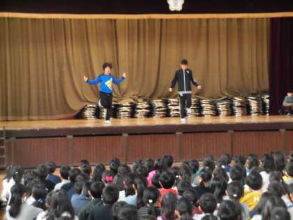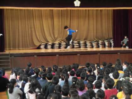 軽快な技に、全校児童から拍手が鳴り響きました。 -