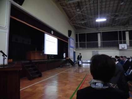 多くの来校者に対して、本校の2年間の研究を発表しました。