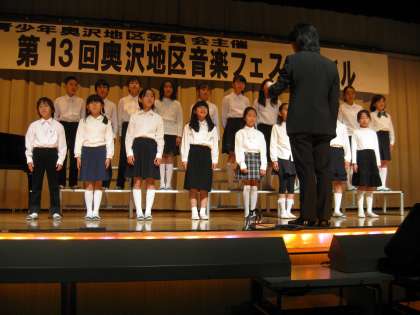 3月14日(日)午後、奥沢中学校で行われた「奥沢音楽フェスティバル」に昨年12月に結成したばかりの奥沢小学校の合唱団が出演しました。