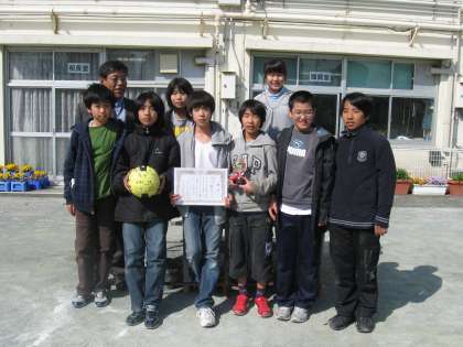 月曜日の全校朝会では3位になった6年1組の子どもたちは校長先生に表彰していただきました。参加した子どもたちは、来年も頑張る!と決意を新にしていました。 -