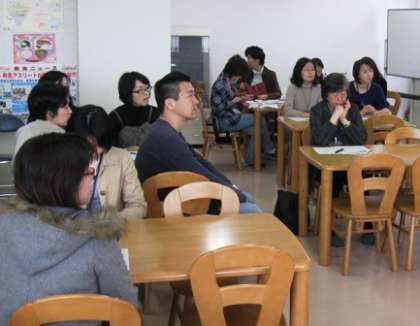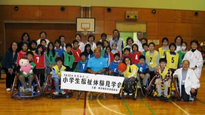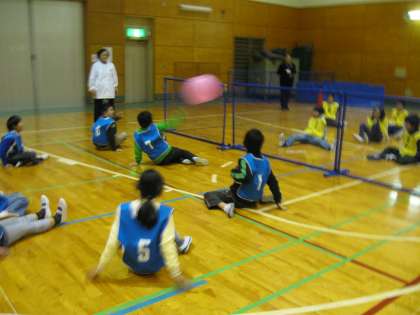 「障害者スポーツセンター」では、子どもたちは4つのグループに分かれ、館内を見学し、利用者がいろいろなスポーツを楽しんだり、身体を鍛えたり、バリアフリーを見つけたりしました。また、サウンド卓球を交替に楽しんだり、お昼の後は、「車椅子バスケット」や「シッティングバレー」を体験しました。