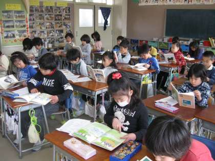 子どもたちに読書の楽しさを味わい、本に親しみを感じてほしいと考え、今年度は3回の読書週間を設け、取り組みました。1学期は「あじさい読書週間」2学期は「コスモス読書週間」そして、3学期は「なの花読書週間」としました。 -