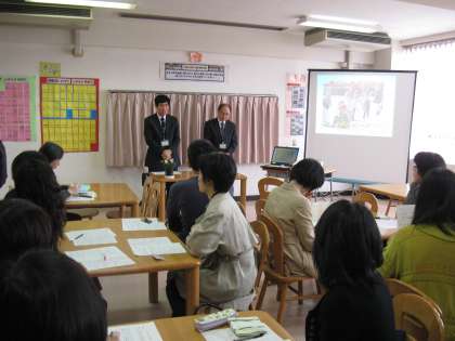 学校長より、平成22年度の1.学校経営方針 2.数値目標 3.取り組みの変更点 4.行事予定について、お話をしました。また、同席していただいた本校の学校運営委員長の塩谷さんからもお話をいただきました。