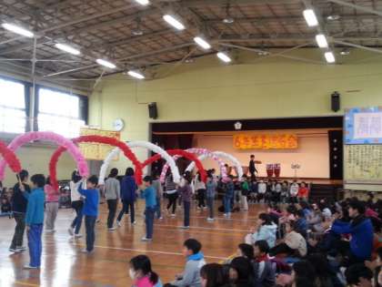 1年生から5年生までの児童が、これまで奥沢小のリーダーを担ってきた6年生に感謝の気持ちとエールを送る「6年生を送る会」がありました。気持ちのこもった在校生の合奏、合唱、寸劇、呼び掛け。それを見つめる6年生のあたたかな目がありました。会場の装飾も、全校で分担して作りました。