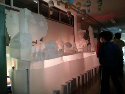 6年生が図工の時間に作った作品を、中休みにライトアップしています。幻想的な雰囲気の中、一人ひとりの個性あふれる作品が映えています。鑑賞に来た下級生からは、「さすが、6年生」という声が聞こえてきました。