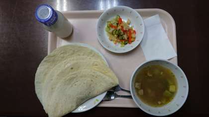 10月から、オリンピック・パラリンピック教育の一環としてスタートした「世界の料理」も、第6回の今回で最終回です。今回は「メキシコ料理」です。トルティーヤにチリコンカンを巻いていただきます。鶏だしに野菜がたっぷり入ったスープ「カルド・デ・ポジョ」。シーザーサラダです。サラダに乗っていたクルトンは、調理員さんがパンをカットして油で揚げて作りました。給食を通して、世界の国々に関心がもてるようになってほしいという願いからスタートした取り組みでした。子どもたちも、楽しみにしていた取り組みでした。