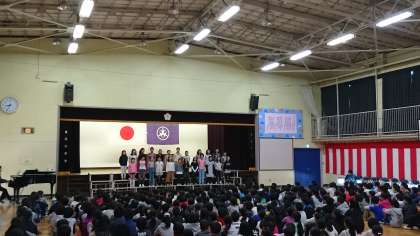 今年度最後の音楽朝会では、奥沢小学校合唱団の演奏を聞きました。朝の練習続け、これまでに3回、大きな舞台で演奏をしてきました。自信に満ち、そして、楽しそうに、きれいな声を響かせる合唱団のメンバーに、全校の児童からあたたかい拍手が送られました。