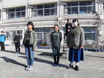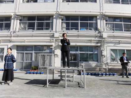 15日は、学び舎(奥沢中学校・東玉川小学校・奥沢小学校)合同あいさつDayでした。