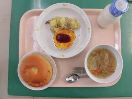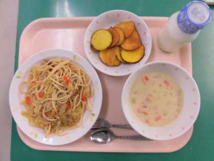 今日の「さつまいもチップ」は、全校児童分を調理さんが全て手作業で切ってくれました。本当にありがとうございます。とても美味しかったです。