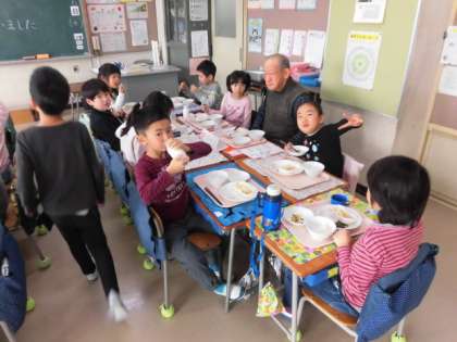 1年間下校を見守っていただいた「ふれあいパトロール」の方々を1年生がお招きし、感謝の意味を込めて会食をしました。