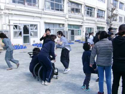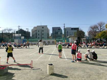 今日は、土曜授業日でした。5・6年生は、6年生の卒業を前に「お別れスポーツ大会」を開催しました。チームごとに、綱引きや玉入れ、鬼遊び、バスケットボールなどに取り組み、勝敗を競いました。5年生も6年生も思い切り体を動かし、共に活動することで、思い出に残るスポーツ大会にすることができたと思います。