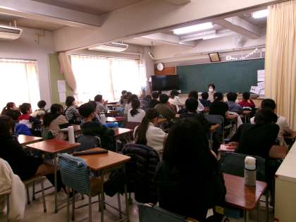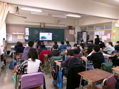 今日は、朝の時間にエコライフ委員会によるエコライフ集会が開かれました。ビデオ放送による集会です。集会の中では、環境問題に関する様々なクイズが出され、みんなで答えを一生懸命に考えました。今、地球がどういう状況にあるかや、地球の環境を守っていくために自分たちでできることなどについて考える機会になりました。