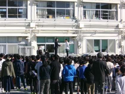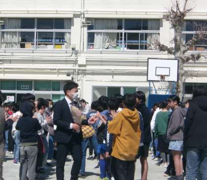 昨年度より、年度内に離任する教員を発表できるようになりました。今年度は、今日離任式を行いました。お世話になった教員に別れを告げなければならず、そのさみしさに涙を流す児童もいました。学校長からは、「人生に別れは付きものです。この別れを受け止め、それぞれの場所でそれぞれが自分らしく活躍することが大切です。」と話し、励ましました。また会える日を、そして来年度の新しい出会いを楽しみ春休みを過ごせるといいですね。