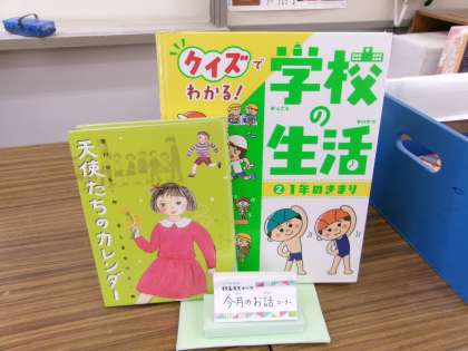 毎月、学校図書館では、全校朝会での学校長の講話の内容を掲示し、そのテーマに関する図書を紹介するコーナーがあります。全校朝会での話を聞いて、興味をもった児童が手に取って見ています。今月は、1年間の振り返りでしたので、学校生活についての本を紹介しています。残りわずかな今年度ですが、振り返りとして読んでみてはどうでしょう。