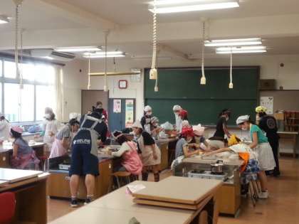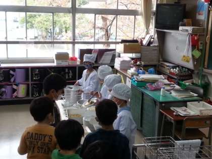今週から、1年生の給食が始まりました。身支度や配膳の仕方が、どんどん上手になってきています。食事のマナーを守って、楽しくいただきます。