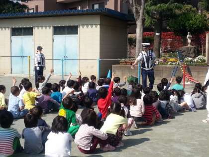 警視庁玉川警察署交通課の方をゲストティーチャーにお招きし、交通安全教室を行いました。1・2年生を対象に、歩道の歩き方、横断歩道のわたり方等について、詳しく教えていただきました。お話の後は、学校周辺の通学路に出て、学んだことを生かして歩きました。