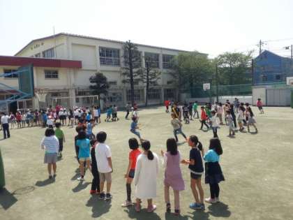 今日は、久しぶりの晴天です。暖かい春の日射しが校庭を照らしていました。新学期に入ってから雨天が続き、子どもたちは室内遊びの約束を守って生活して来ました。今日の日射しを見て、子どもたちは「今日は、校庭で遊べるね!」と、朝から休み時間を楽しみにしてました。休み時間には、たくさんの子どもたちが、校庭で楽しそうに過ごしていました。