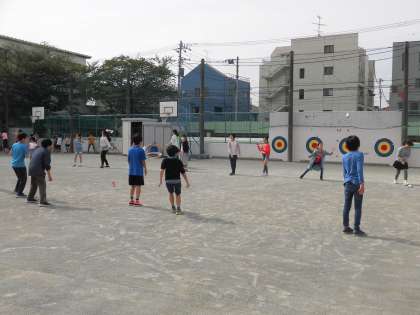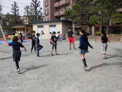 投の運動や短縄跳び、竹馬などに取り組んでいました。