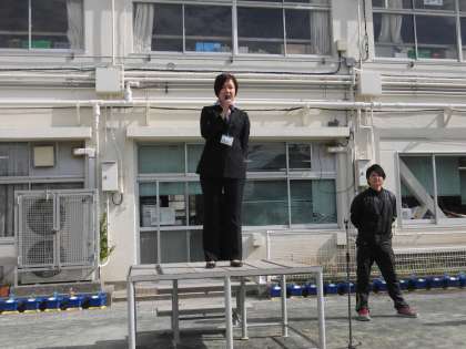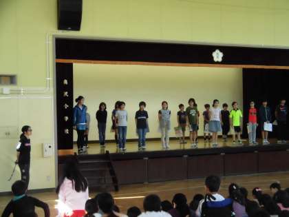 今日の児童集会は、委員長とクラブ長が自己紹介と活動内容について発表しました。