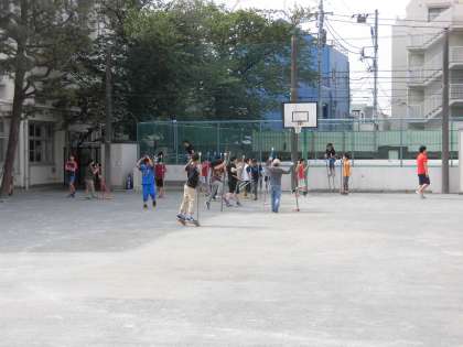 今日は、高学年の児童が朝運動に取り組んでいました。