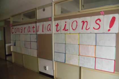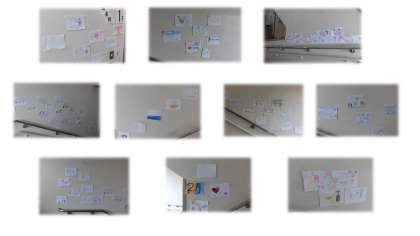 第1階段1〜2階へむけて1年間の学校の様子を4年生がカードにしてくれました。