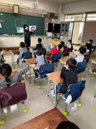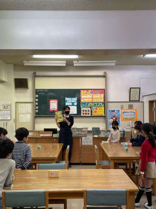 国語の学習で、司書の先生に、本の分類や、本の部分の名前、本の扱い方などを教えていただきました。クイズも交えて、楽しくお話を聞くことができました。