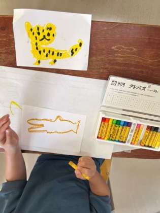 図工「すきなものいっぱい」の学習では、クレパスを使って、自分の好きなものをたくさん描きました。