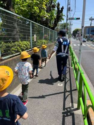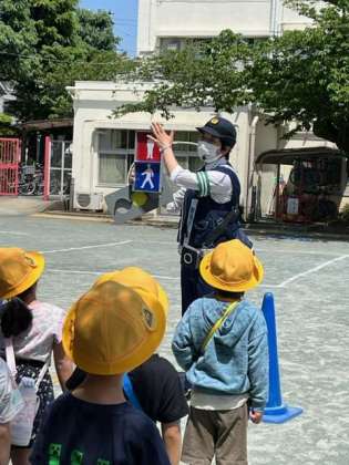 教室で交通安全についてのDVDを見たり、実際に道路を歩いたりしました。