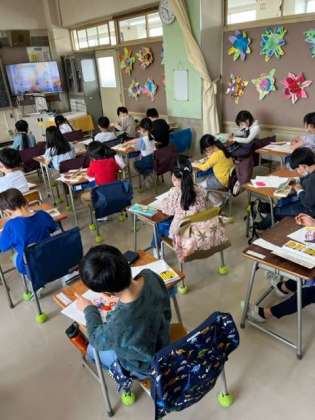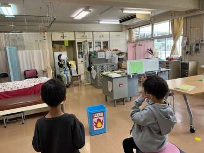 教室で練習をしてから、保健室に移動して視力検査を行いました。