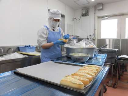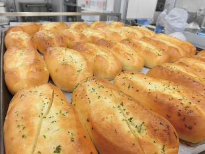 ソフトフランスパンに、ガーリックバターを塗って、焼いてガーリックトーストが出来ました。