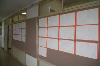 現在、掲示板は、教科書の詩の視写が掲示されています。