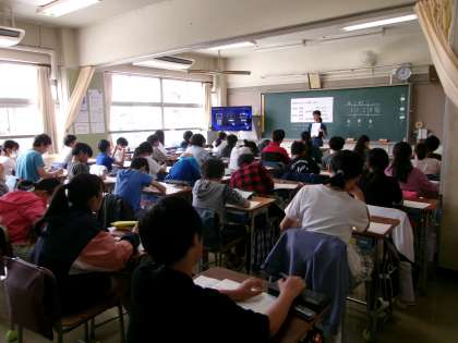 現在5年生は、算数の学習で「体積」について学んでいます。体積を表す単位について知ったり、体積を出すための公式を導き出したりと、しっかりと考える活動をしています。最後は、学習用タブレット端末の「Qubena(キュビナ)」というアプリを使って、練習問題に取り組みました。5年生が、「ここを押せば解答や解説も出てくるので、一人で練習問題をどんどん解いていくことができます。」と教えてくれました。今年度も、学習用タブレット端末の有効な使い方を考えていきます。