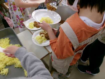 初日からおかわりの手を挙げる児童もいました。給食が大好きになってほしいです。 -
