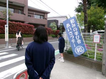 今日は、4月の「あいさつDAY」です。学び舎あいさつDAYは、毎月15日前後で行っています。この日は、同じ学び舎の奥沢中学校の生徒会の皆さんが来てくださり、校門で朝の挨拶をしてくれます。東玉川小学校と奥沢小学校を1か月ごと交互に訪問してくださいます。奥沢中学校の生徒会の中には、奥沢小学校出身の方もいて、懐かしい顔ぶれに笑顔がこぼれ、奥沢小の子どもたちの挨拶もより一層元気な声が出ていました。奥沢中学校の生徒会の皆さん、ありがとうございました。