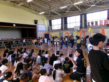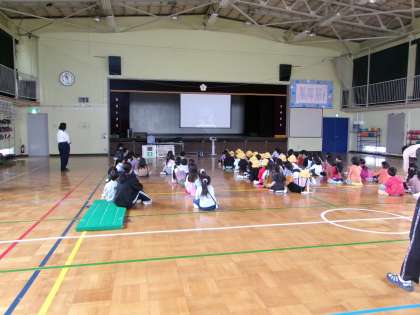 今日は2時間目に「1年生を迎える会」を行い、2〜6年生と1年生が全校で顔合わせを行いました。児童運営委員の6年生が司会を務め、会を進行しました。2年生は歓迎の言葉とプレゼントを渡し、3年生は歌を贈りました。1年生の入退場時に、4年生は花のアーチを作り、5年生はリコーダーでの演奏を担当し、6年生が1年生の手を引いて入場する担当を務めました。2〜6年生の歓迎の気持ちを受け取り、1年生も一生懸命にお返しの歌を歌い、全校児童の気持ちが通い合う素敵な会になりました。異学年にも友達ができるといいですね。