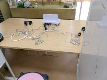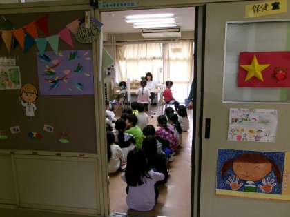 1年生は、初めての健康診断を受けています。今日は、聴力検査です。教室から保健室に向かうときも静かに上手に歩けました。養護教諭の聴力検査の受け方の話を一生懸命に聞きました。ちょっと難しい検査でしたが、しっかりと受けることができました。