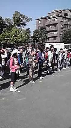 移動教室出発式。7時の集合時間5分前には全員が揃い、元気いっぱいの挨拶で出発式を始めることができました。児童の表情には移動教室へのわくわく感がいっぱいでした。保護者の皆さまの見送りありがとうございました。