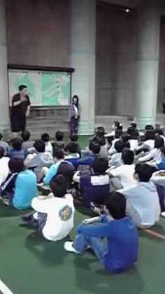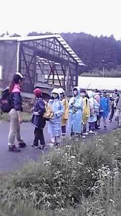 3日目は朝から小雨。屋内運動場で朝会をしました。昨日の疲れがややあるものの、子どもたちは全員元気です。5分前行動もしっかりできています。