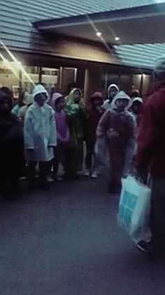 夕食後、1時間半のナイトハイクを楽しみました。宿舎の上にある森は、時間がたつにつれ真っ暗闇。耳をすまして森の音を聴き、提灯の明るさだけで歩く等夜の森を体感しました。