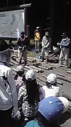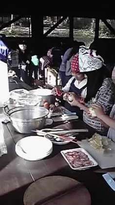 1時30分から、椎茸の駒うち(原木に菌を入れる作業)と収穫を行いました。皆、初めての体験で楽しんでいました。