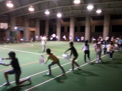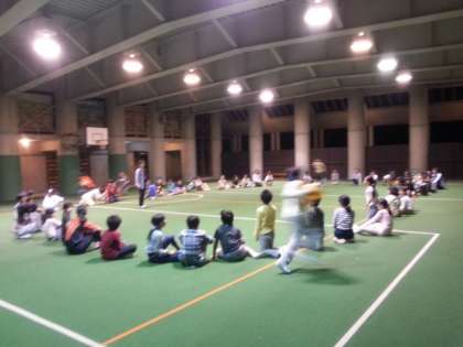 二日目の夜は、屋根つき広場でレクリエーションを楽しみました。里山めぐりから帰った後、レク係が話し合い、工夫を凝らして運営をしました。レク係のその気持ちに応えて、全員がこのイベントに協力し、盛り上げました。最後には、みんなの思い出の民舞「花笠音頭」を踊りました。