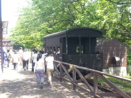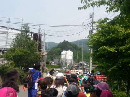 二日目午後の里山めぐりは、観光と酪農がテーマです。村の観光産業の発祥元と言われれる蒸気機関車を見学しました。その後、宿舎への帰り道では、酪農家の工夫や村の酪農などについて学びました。宿舎までの長い上り坂は、難関でした。