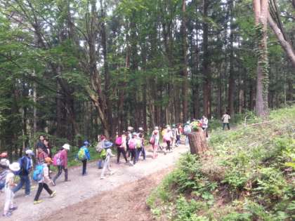 1日目の午後は、「里山入門」です。3日間の里山についての学習のガイダンスです。現地の専門スタッフの方に里山とはどういう地域なのか、世田谷との違いは何か…など、詳しく教えていただきました。宿舎周辺を歩きながらの説明に、子どもたちは集中して聞き入っていました。
